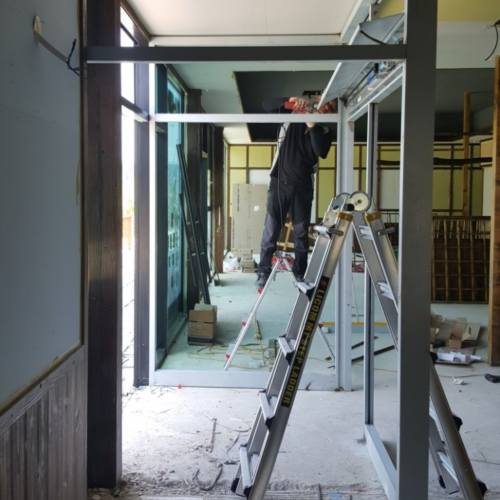 김포 아울렛 양개자동문 및 가마찌 도어 시공 -